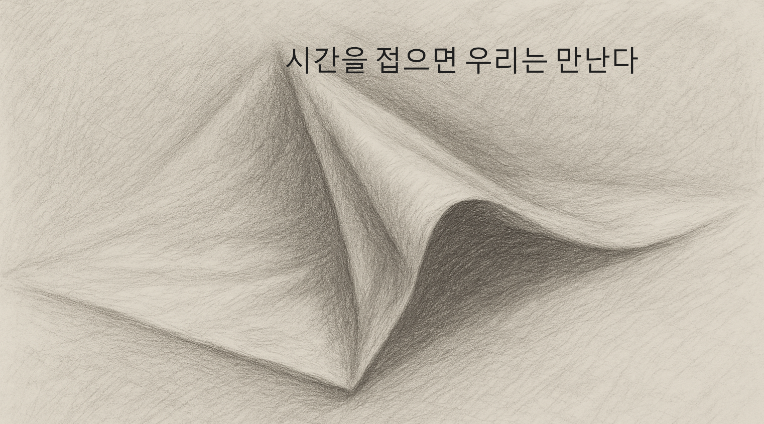 내게 얼마의 시간이 이 지상에 남아있을지 나는 모른다. 하지만, 결국 나도 그리 갈것이다. 나는 그 시간에 대해서 생각해보았다. 당신이 그리 간 시각. 그리고 내가 그리 가게 될 시각. 그 시간의 두 점사이에는 거리가 존재한다. 그런데 종이접기를 하듯, 당신이 그리 간 시간과,내가 그리 가는 시간의 두점을 포개면, 두 다른 시각이 동일한 점에서 만난다. 나는 두개의 시각이 만나는 그 점에 대하여 확신한다.